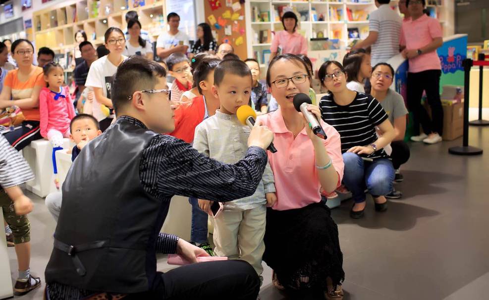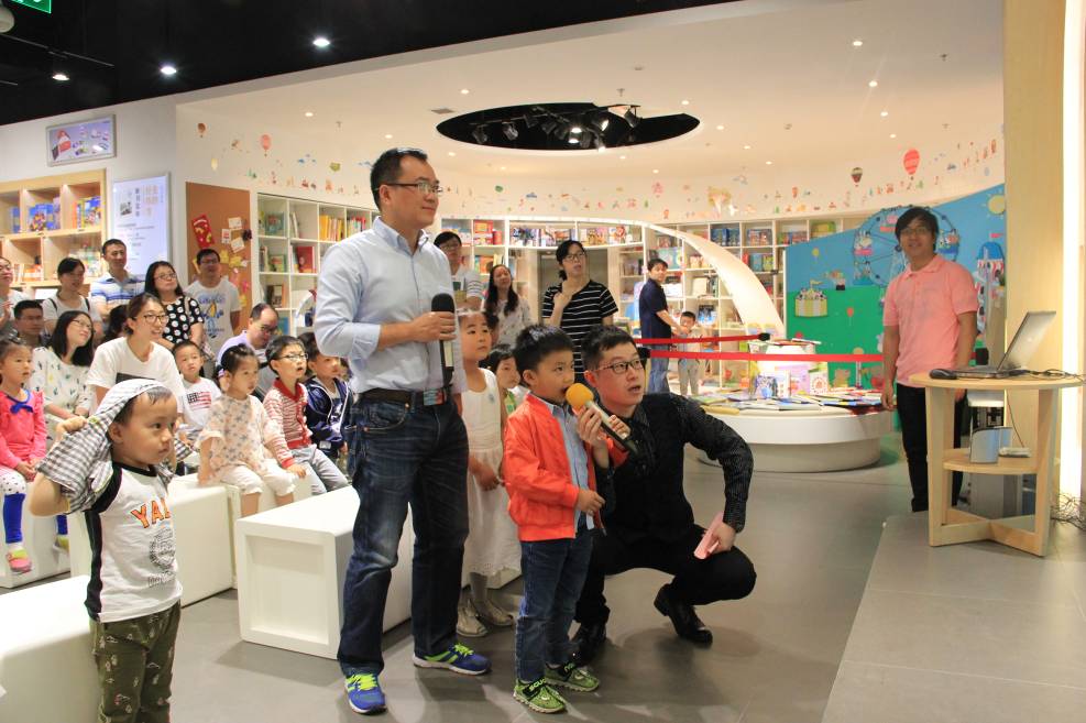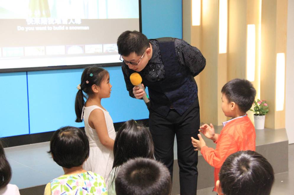 上海市职工主持人大赛未来星主播银话筒奖的得主——中科院上海药物所曹宇立与小朋友们互动