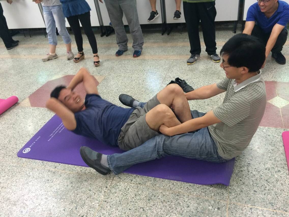 金秋伊始,为促进职工和学生加强体育锻炼,改善身体亚健康状态,超声技术中心于2016年8月31日中午在DSP楼多功能厅举办了趣味健身比赛。比赛内容主要包括“俯卧撑”,“仰卧起坐”和“小燕飞”三项比赛;并且活动分为两组进行比赛,“男子组”主要进行“俯卧撑”和“仰卧起坐”两项,而“女子组”则进行“仰卧起坐”和“小燕飞”两项项目。此三项运动十分适合久坐办公室的人群,着重锻炼腰部、腹部、脊椎和肩部等位置,能给身体的健康带来莫大的益处。