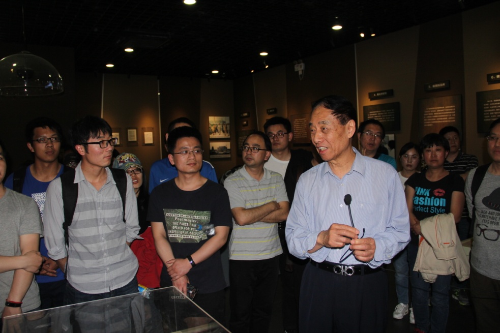 中国科学院与“两弹一星”纪念馆坐落于中国科学院大学雁栖湖校区内,在中国科学院原怀柔火箭实验基地原址建造,展出内容包括“两弹一星”攻关史、攻关人物以及中国科学院早期学科奠基人三部分。这里从环境到房屋,从室外的试验仪器设备到展馆内的展品、模型及档案资料,无不带有历史的沧桑和厚重感。大家看见声学所汪德昭、马大猷、应崇福三位老院士的名字和科研贡献赫然出现在纪念馆里,十分自豪。在声学所做出的贡献展板前,大家非常有幸聆听到历史亲历者侯朝焕院士生动而具体的讲述。大家了解了侯院士主持科研成果诞生过程中的所思所想所为;认识到,在学习国外先进技术的同时,要有走科研自主创新道路的自信心,我们所拥有的光荣发展历程,展现了老一辈科学家们一步一个脚印,踏实向前的优良传统,我们站在这坚实基础上,应继续努力前行。侯院士的讲述也让纪念馆的讲解员们非常兴奋,使她们汲取了更多的历史背景知识,丰富了讲述素材。纪念馆中的每一个人物、每一段故事都引导着大家不要忘记在科研工作中追求真理与卓越和保持一颗拳拳爱国心。
