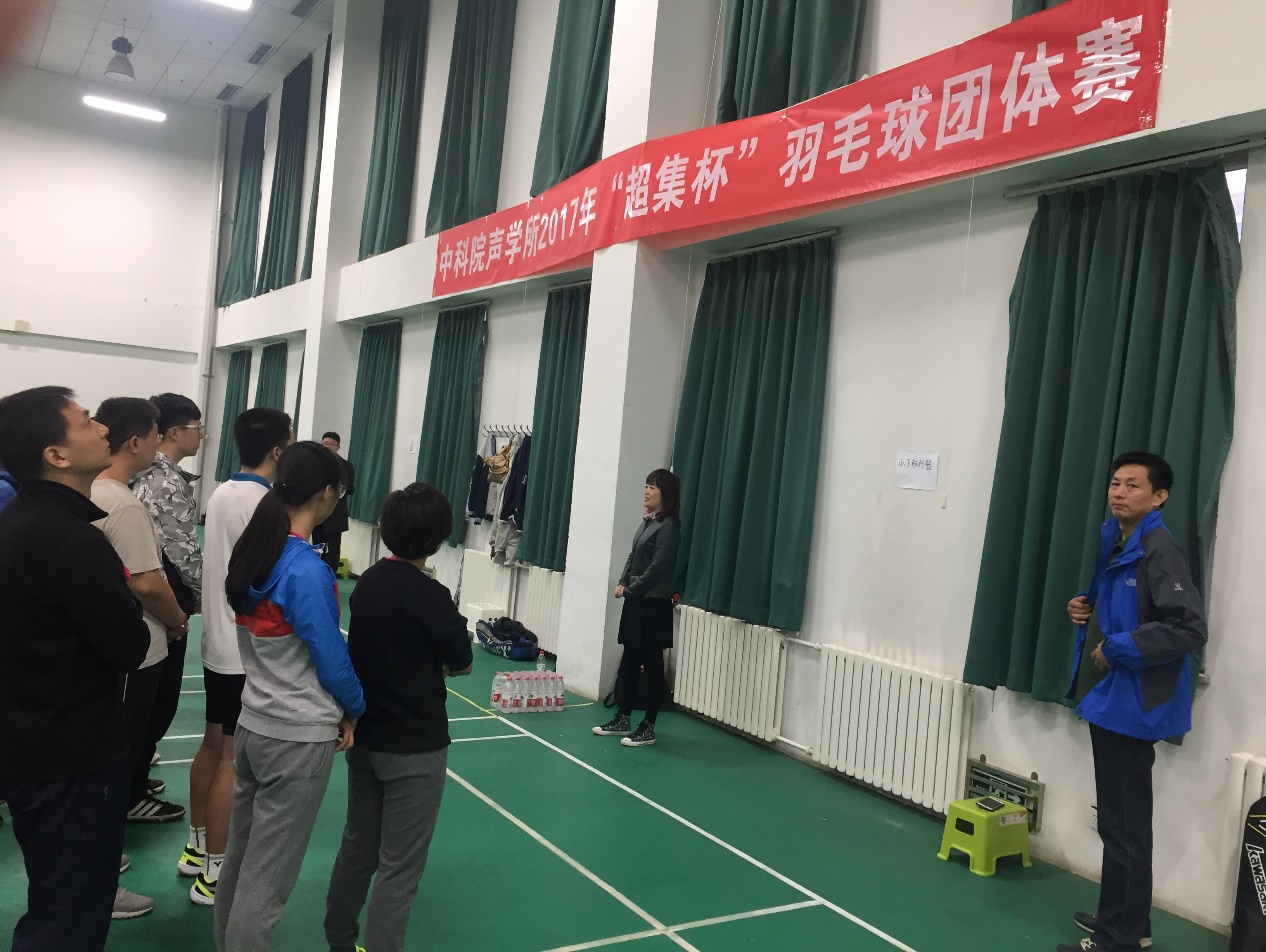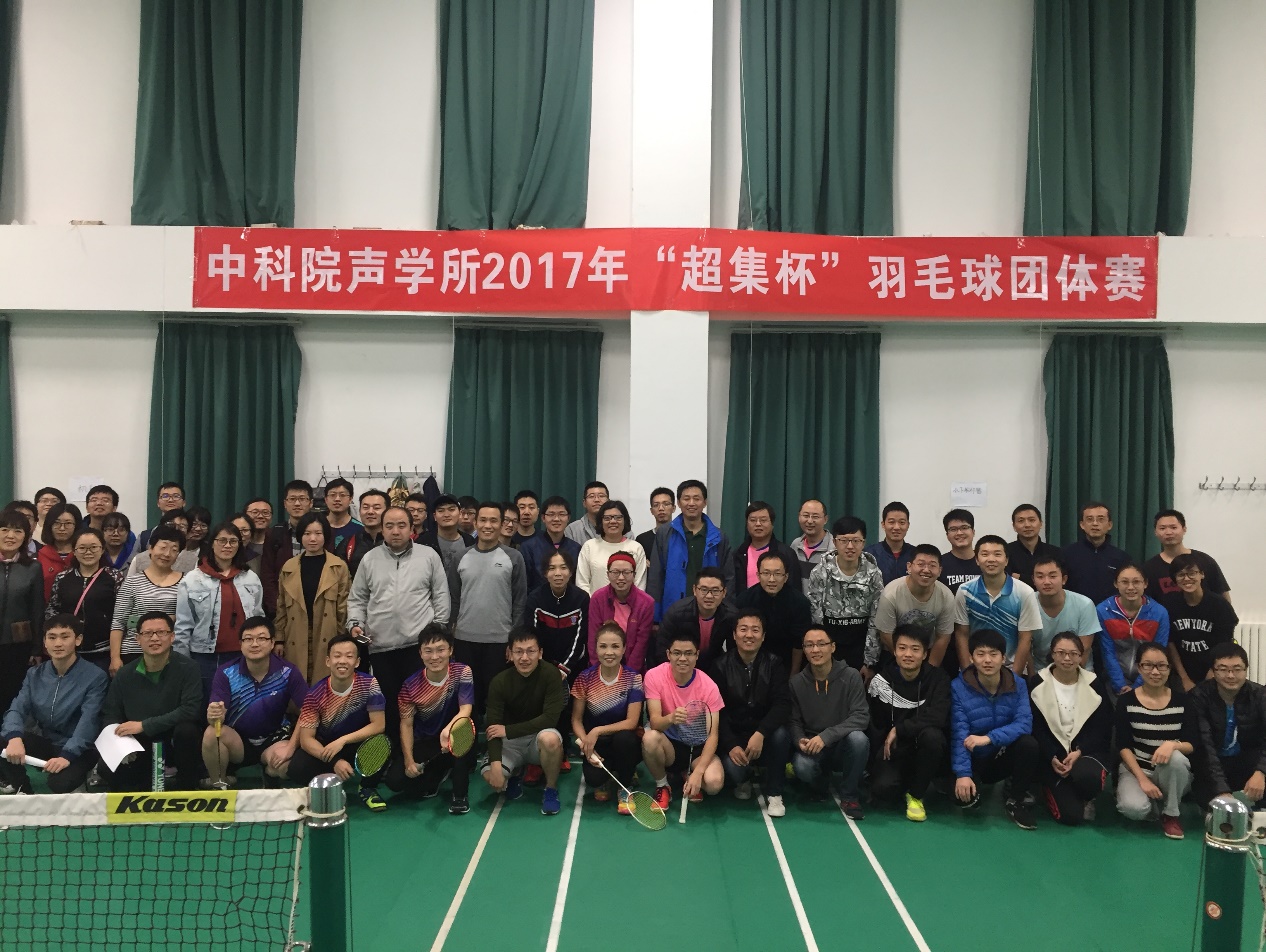 为了进一步丰富声学所职工与学生的课余生活,促进体育爱好者间的交流。2017年10月22日,声学所2017年“超集杯”羽毛球团体赛在生态中心羽毛球馆举行,全所近100人参加了比赛。开幕式由羽毛球协会会长陈家熠主持。声学所党委书记张春华书记出席开幕式并致辞,声学所所务助理、工会常务副主席周秀霞等出席开幕式。经过一天的激烈角逐,声场声信息国家重点实验室代表队勇夺团体冠军。