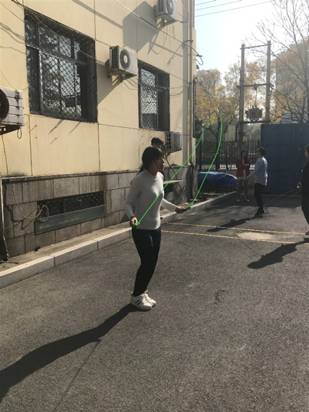 本次运动会分为跳绳、背靠背双人夹球,沙包掷准,托球跑这四个项目,每个项目都在工作人员的组织下紧张有序的进行。这四个项目分两天进行,第一天举行的是跳绳和背靠背双人夹球,跳绳比赛最为紧张激烈,很多职工和同学们都是跳绳高手,只听裁判一声令下,各个参赛运动员以矫健的身姿快速跃动起来,只听啪啪啪绳子落地的声音,呼呼呼绳子挥动的风声,网络新媒体中心的陈婉杰同学快速跳跃,将绳子挥舞的上下翻动,原来她为了这次比赛已经提前训练了半个月,凭借刻苦的努力,她跳绳的技艺不断提升,最终以优异的成绩完成了比赛。