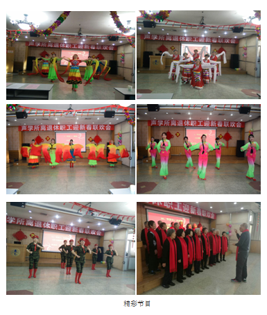 联欢会在退休职工任小燕和人力资源部张华、史君熠三位同志的主持下,拉开了序幕。丰台区军星艺术团友情出演,带来了“欢聚一堂”、“又唱南泥湾”、“再唱洗衣歌”、“学习雷锋好榜样”等精彩纷呈的节目。任小燕老师深情优美的女声独唱,程明昆老师领衔的退休职工大合唱,无不展现出老同志良好的精神风貌。联欢会历时三个小时,在“友谊地久天长”歌声中圆满落下帷幕。