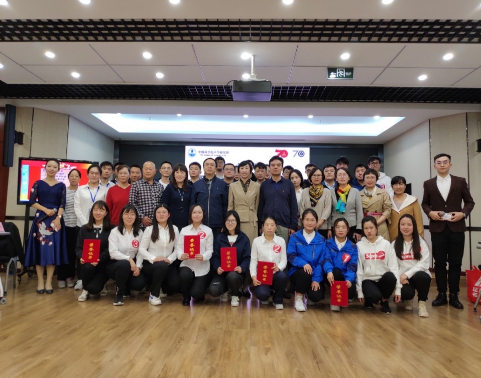 为庆祝新中国成立70周年、中科院建院70周年和声学所建所55周年,激励全所广大职工群众不忘初心、牢记使命、开拓创新、奋发有为,2019年10月30日,中科院声学所第四届“国情,党史,院史,所史”知识竞赛在声学所DSP大楼四层多功能报告厅举行。本次竞赛由声学所工会、团委和研究生部联合组织举办,所研究生会承办。所属各分工会分别组队,共10支代表队、30名选手参加了竞赛活动。所党委副书记李浩然任仲裁组组长,党委办公室主任刘宏伟,工会主席林伟军,院水下航行器信息技术重点实验室主任鄢社锋,工会常务副主席周秀霞,研究生部主任李辉,团委书记崔杰,作为仲裁组成员出席了本次活动。