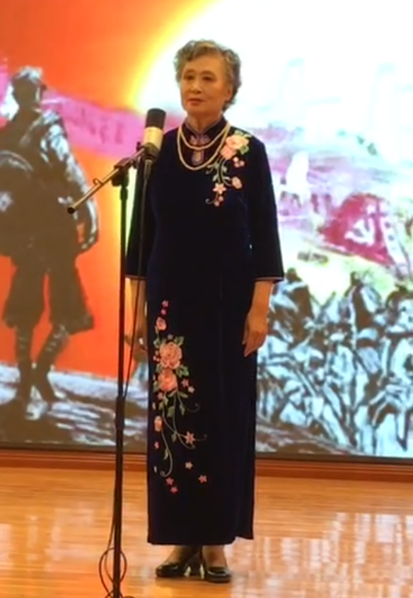 范桂珍老师用别致的唱腔歌唱了毛主席诗词《忆秦娥.娄山关》,范元春老师为幕后拉琴者。