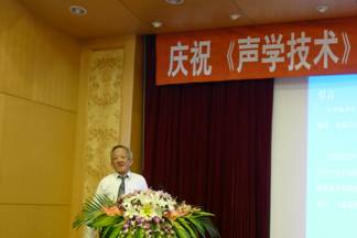 庆祝会上,上海市新闻出版局陈丽副局长作了重要指示,通报了上海报刊工作情况、报刊改革、发展和管理各项工作,对《声学技术》创刊30周年表示祝贺,对《声学技术》的学术水平、编校工作给予肯定和鼓励,并将支持《声学技术》持续发展。胡长青站长代表主办单位领导致辞,欢迎各位领导、嘉宾及代表出席会议。他简要回顾了水声技术的发展及《声学技术》的创刊历史,肯定了30年来《声学技术》所取得的成绩;胡长青站长还宣读了中国科学院声学研究所兄弟期刊《声学学报》、《应用声学》和香港声学学会的贺信。两位老主编、现名誉主编冯绍松研究员、王季卿教授,以激动的心情回忆了当年创刊的艰辛岁月及创刊后经历过的一些沿革和变更。孟昭文理事长在代表上海市声学学会的讲话中说,我们学会自始至终支持期刊的工作,各主办单位给予了人力物力的支持,《声学技术》30年来所取得的成绩,是历届学会领导、各主办单位、历届编委会和编辑部同仁共同努力的结果,学会将会一如既往地支持期刊的工作,希望声学技术“越办越好,名列前茅”,同时也感谢国内外声学界的科技工作者长期以来给予的支持和鼓励!随后,姚蓝主编代表编委会和编辑部,作了题为“回顾过去 为了未来”的报告,汇报了为庆祝这次活动所做的工作,《声学技术》的办刊经历,30年来刊物取得的进步和今后进一步办好刊物的一些设想;姚蓝主编认为,30年来《声学技术》取得了一定的成绩,在声学界赢得了较好的声誉。