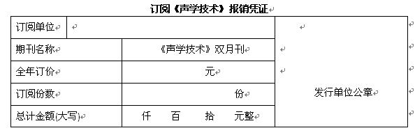 邮局汇款:上海市小木桥路456 《声学技术》编辑部收 邮编:200032