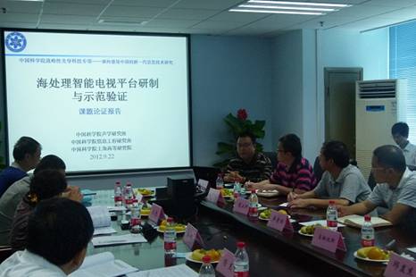 2012年9月22日,中科院高技术局在声学所组织召开了中国科学院战略性先导科技专项“面向感知中国的新一代信息技术研究——海处理智能电视平台研制与示范验证课题”的立项论证评审会。会议由中科院高技术局信息处李才兴处长主持,中科院信息工程所田静所长、中科院微电子所叶甜春所长和广电总局、中国电子科技集团电视电声所、深圳创维集团、四川长虹电器股份有限公司等单位的领域专家作为评审组成员出席了此次评审会。声学所孙鹏副研究员在会上作了课题论证报告,并进行了课题相关前期成果的演示。我所倪宏副所长、王劲林主任、杨军主任和科技处周城光副处长等同志及课题参研单位声学所、信息工程所、自动化所、上海高研院以及院ICT先导专项实施管理办公室的相关人员出席了会议。