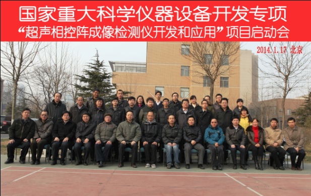 2014年1月17日,国家重大科学仪器设备开发专项“超声相控阵成像检测仪开发和应用”启动会在北京召开。会议听取了项目负责人声学所张碧星研究员的总体报告和项目牵头单位北京中科海讯科技有限公司相关负责人的管理制度报告,并向11位项目技术专家委员会专家颁发了聘书。科技部刘春晓副调研员,中科院姜言彬主管,中科院声学所李风华副所长、高军保处长,项目技术专家委员会专家,北京中科海讯科技有限公司蔡惠智董事长以及项目各参加单位成员共50余人参加了会议。