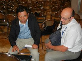 ESC2012会议是欧洲地震研究协会举办的学术会议,会议上聚集了欧洲国家众多的地震研究工作者,会议主题包括地震物理机制及相关领域,地震预测,人工智能在地震数据处理研究中的应用,地震预防等众多与地震相关的研究领域,其中本次会议专门列出地震与次声关系的分会,旨在促进多个物理领域实现对地震灾害难题的研究。8月24日,杨亦春研究员与法国CEA研究员Guilbert在此分会场就地震与次声关系进行了深入的探讨。