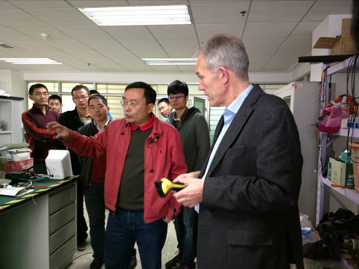 13日下午,杨军主任、孙红灵副研究员和从事相关研究的十几名学生与Elliott教授进行了深入研讨。杨军主任介绍了中科院声学所、噪声与振动重点实验室的基本情况以及目前进行的相关研究工作;孙红灵副研究员详细介绍了有源噪声与振动控制小组所进行的管道噪声有源控制、主动隔振、分散式主动控制等方面的研究成果。Elliott教授给予了高度评价并给出了中肯的建议。雷成友、肖龙帅、刘力、蔡野峰等学生也分别介绍了自己的研究工作,并与其进行了深入的讨论。此外,根据2011年双方签署的合作备忘录,杨军主任和Elliott教授详细讨论了下一步的合作交流计划。