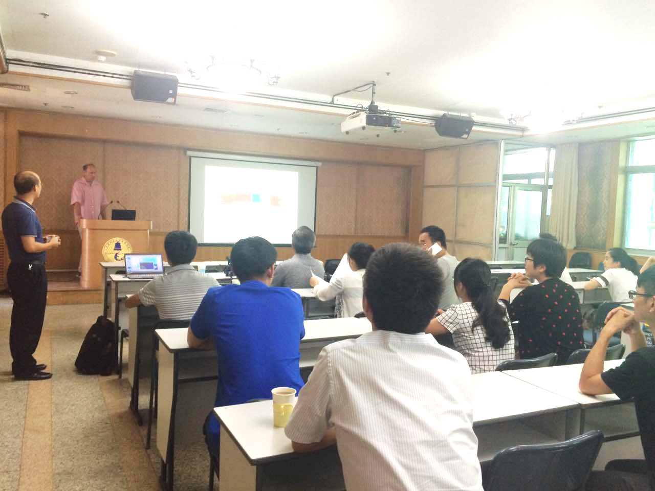 然后,艾德里安教授在DSP楼多功能厅做了学术报告。针对电力设备中电路节点在高温下易出现热失控等问题,艾德里安教授讲解了对电力设备的热分析方法,主要包括对电力设备半导体闸流管、PCB简化模型等建立起的三维数值仿真模型,并基于此,介绍了可对此热效应进行保护的特殊保险丝装置的设计及优化的PCB版设计。此研究对电力设备的安全可靠性具有重大意义。