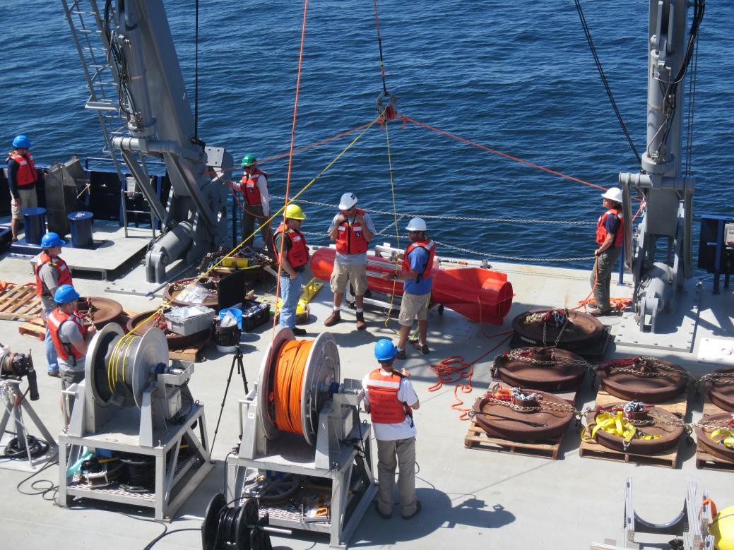 △实验现场,研究人员在甲板布放设备