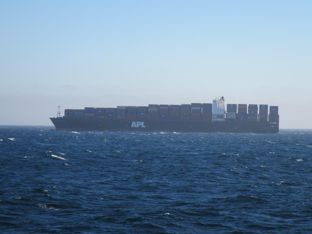 △从实验现场拍到的远处过往商船