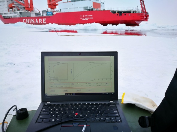 作为水声学研究的专业科研人员,吴玉泉博士担任了“九北”考察队声学观测组的组长,担负着在北极这片陌生的海洋上探索“声音”奥秘的职责,他充分发挥专业特长,科学组织,精心准备,组织声学考察小组开展核心工作,协调其他考察队员充分帮助。他带领声学考察组及其他辅助队员经常24小时连续作业,争分夺秒的开展工作,首次在北极高纬度地区开展了声学综合观测,对多分支海洋声学进行了交叉观测,最长连续观测时间为17个小时,取得了大量翔实的试验数据,为进一步揭示极地冰区特殊的声学环境及水中目标特征演变机理,为北极航道的利用提供了技术保障。