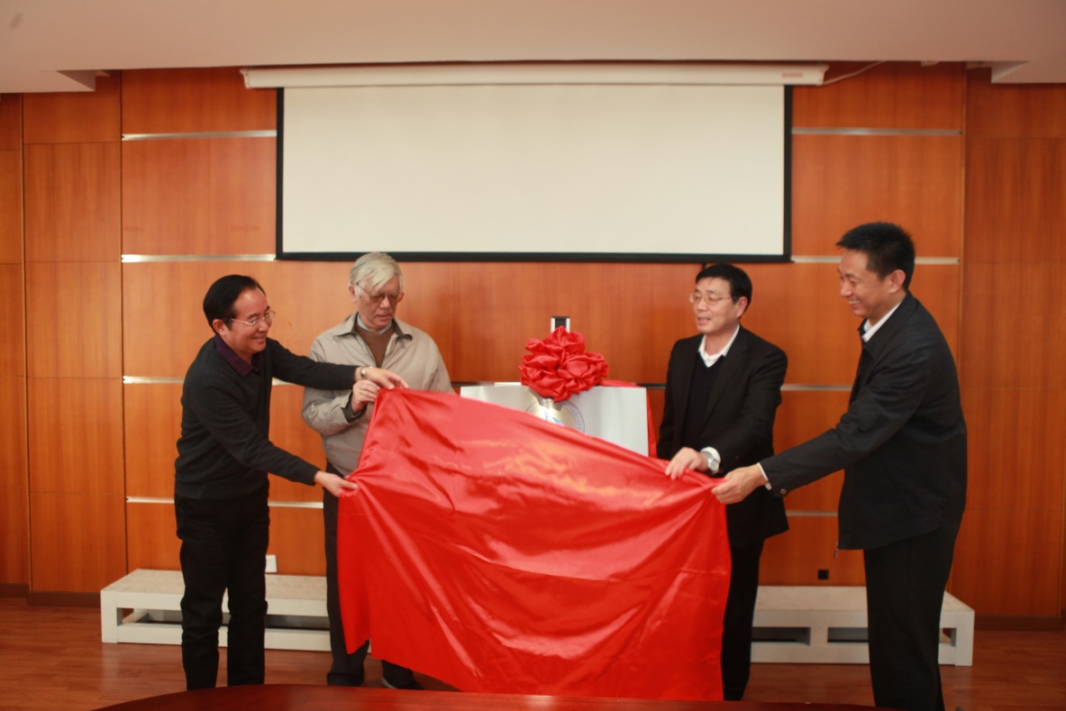 王小民所长、张春华书记与李启虎院士、陆建华院士共同为实验室揭牌