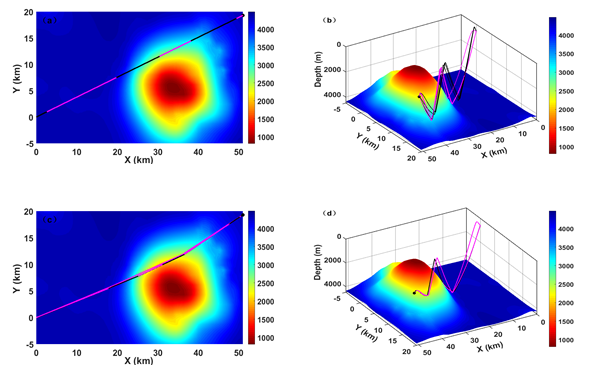 随着国家建设海洋强国战略需求的增强,海洋声学研究从浅海走向深海。声波在深海中传播时会频繁与海底山碰撞,偏离原传播平面,产生的三维水平折射效应对声传播具有重要影响。以往针对海底山环境下的声传播研究多利用二维模型,随着海洋声学研究的逐步发展,海底山环境下的声传播问题由二维逐渐转移到三维模型。