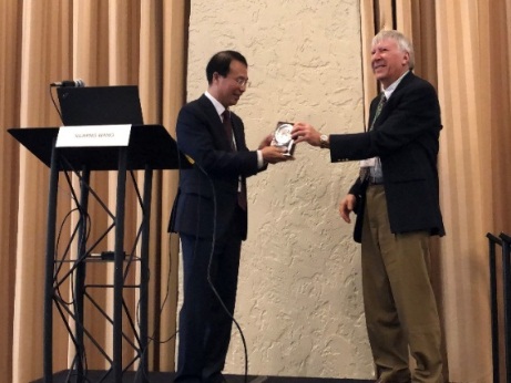 QNDE大会主席Lester Schmerr教授为王秀明研究员颁发Keynote Speaker纪念品(图/中科院声学所)