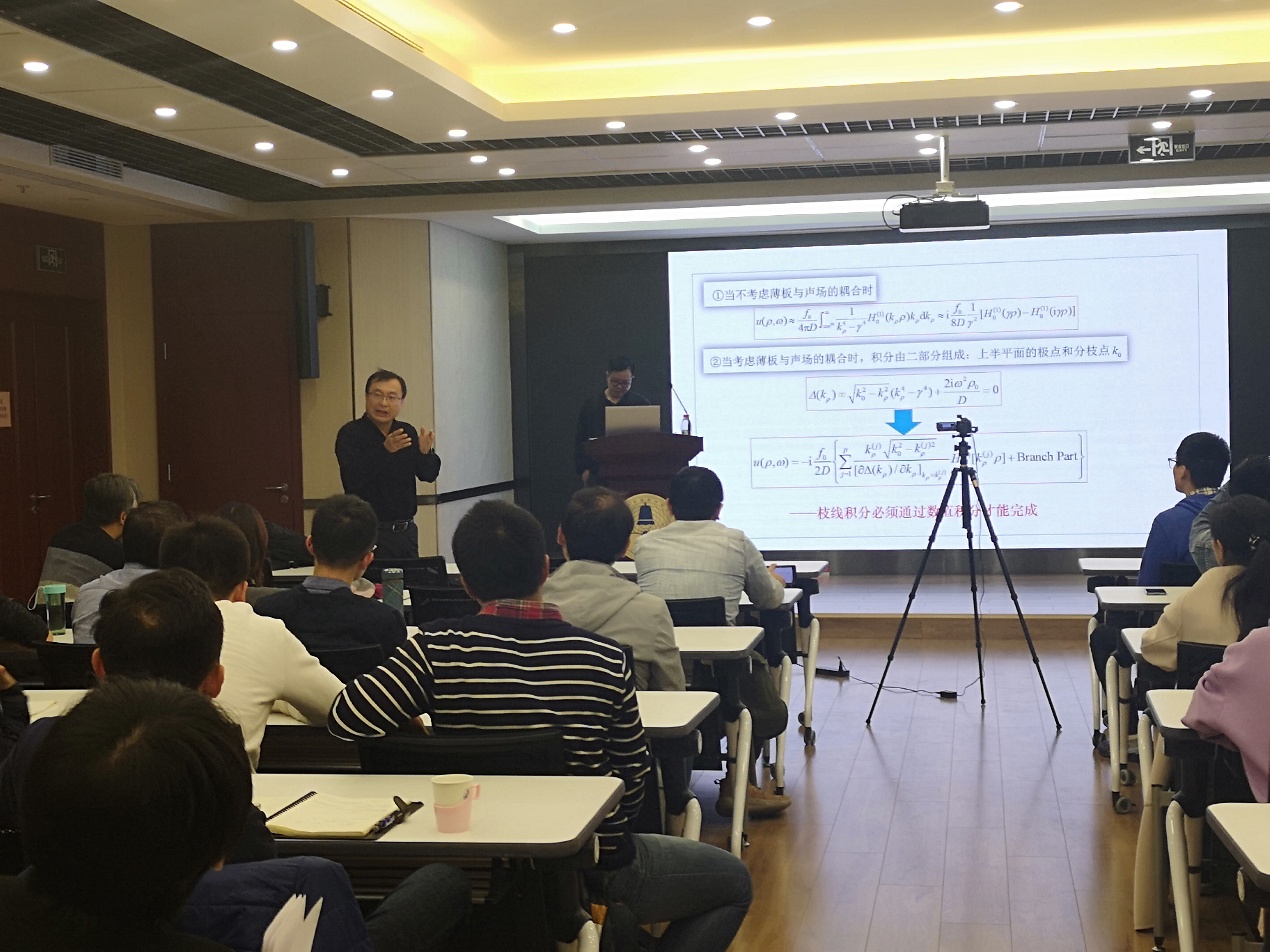 2019年11月21日,《声学原理》的作者程建春教授在DSP楼多功能厅作了《声学基础理论选讲》系列讲座第二讲报告。程建春老师是南京大学教授、中科院声学所的客座教授,他编写的《声学原理》是声学科研工作者的重要参考书目之一。