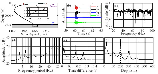 近期,中科院声学所声场声信息国家重点实验室的戚聿波、周士弘、梁玉权等人提出了一种在深海大深度近水平距离接收环境中基于单矢量水听器的被动宽带声源深度估计方法,该方法不需要垂直线列阵、精确的海洋环境参数信息及对运动目标的长时间跟踪,在单快拍情况下仅利用直达波和海面反射波的宽带干涉特征即可实现声源深度估计。