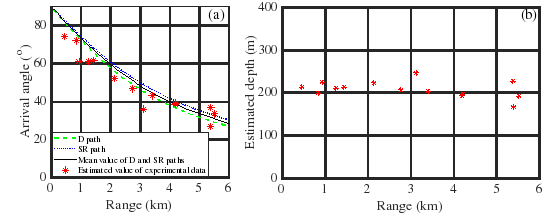 图3 目标到达角(a)和深度估计结果(b)(图/中科院声学所)