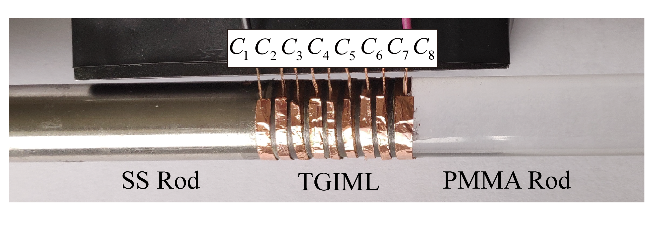 在理论分析的基础上,研究人员利用八层压电陶瓷片构成了可调式阻抗匹配层(图1)。在实际运用中,在每层匹配层接上不同的电容就可以得到所需要的目标梯度阻抗。