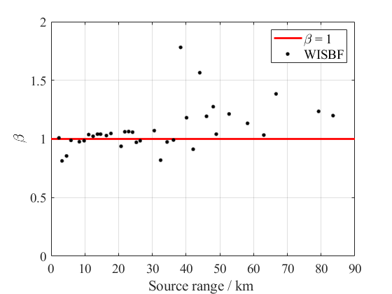 针对以上问题,中科院声学所声场声信息国家重点实验室的博士研究生刘昌鹏与其导师周士弘研究员等人提出了波导不变量维干涉条纹基波束形成器(waveguide-invariant-dimension striation-based beamformer, WISBF)和目标距离维干涉条纹基波束形成器(range-dimension striation-based beamformer, RSBF),可分别实现波导不变量和声源距离的解耦估计,解除了SBF在适用声源方位上的局限性,并用实验数据进行验证。