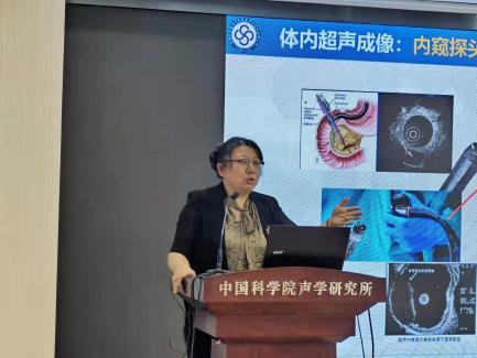 崔崤峣作《微小型换能器及其应用》的报告。报告介绍了医学超声成像技术的基本原理和发展历程、以及各类超声探头的关键核心问题和应用效果,并分享了课题组在多模态癫痫灶精准三维定位、微型骨内超声导航以及介入式超声血栓消融等方面的科研进展。最后,她对超声成像技术的未来发展趋势做了展望。