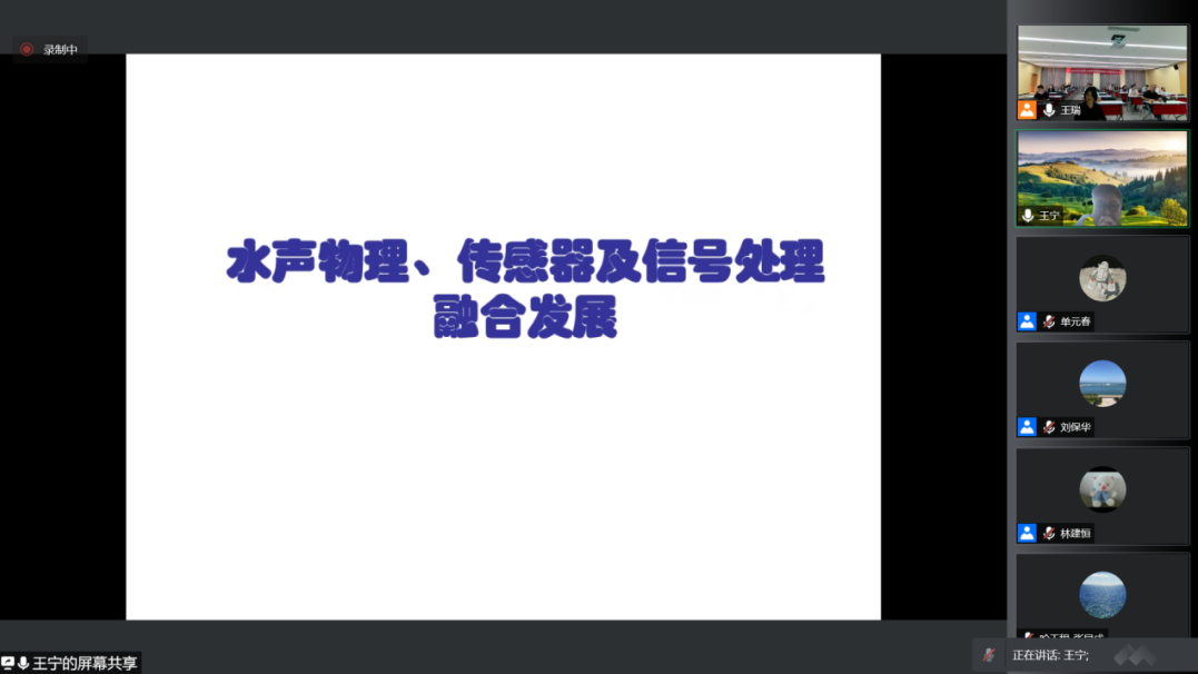 王宁教授作《水声物理、传感器与信号处理融合发展》的报告。水声物理、水声信号处理与水声传感器三个看似不同的研究方向,既各自制约又互相关联。水声物理是传感器信息获取的物理基础,水声信号处理为传感器提供应用需求。报告分析了水声物理、信号处理和传感器的内在属性和存在的局限性,概述了三者之间的关系,提出最大限度克服这些局限性的出路在于三者融合发展。从一个新颖的视角阐述了水声换能器技术的发展趋势,探究传感与信息处理于一体的“广义传感”。