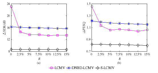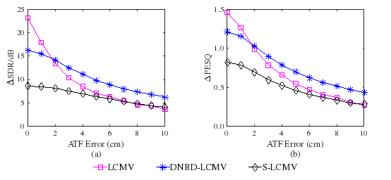 仿真分析结果表明,相比于集中式LCMVDNBD-LCMV对语音活动检测器误差和声学传递函数估计误差的鲁棒性更高;相比于只使用一个节点接收信号的S-LCMVLCMV with only a single node),DNBD-LCMV明显提高了语音增强性能。