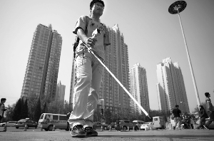 昨日,朝阳公园,男子在体验超声波导盲仪。昨天,北京市第16次无障碍推动日上,多种助残无障碍新产品集中展示,市民可以免费体验,并提出改进建议。从2008年到2010年,北京市已连续三年,累计为4万多残疾人、老年人家庭进行了无障碍改造。北京市残联介绍,今年,北京市政府还将埋单,为1.8万听力残疾人家庭配装可视闪光门铃。
