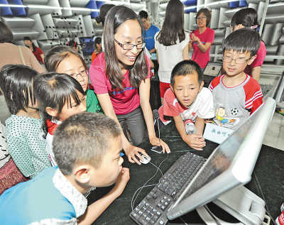 “说歌词,就能检索出歌曲名称?”19日,在中科院声学所参观的北京打工子弟学校同心实验学校的学生们好奇地围在歌曲哼唱检索系统前“找歌”。
