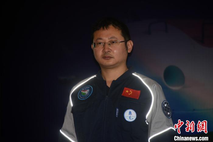 廖佳伟身着潜航员制服科普展现场讲解。 孙自法 摄
