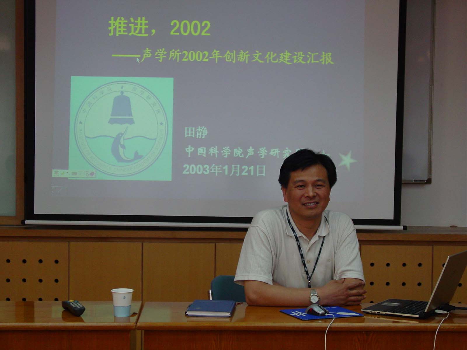 声学所所长田静代表党政班子介绍了声学所2002年创新文化建设的主要工作。他着重介绍了声学所与丰收顾问公司在管理咨询项目、组织文化、环境建设、行为文化、制度建设、形象识别、治所方针和合作理念等方面的培训和宣贯情况。他说,声学所通过借助社会资源,提升全所职工的文化理念、管理水平和创新能力,得到了职工的认可和支持,“科学管理,依法治所”的治所方针已成为职工们的自觉准则。创新文化建设的效果是好的。(所办)