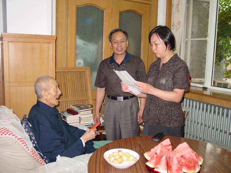 2003年6月26日上午,声学所党委、纪委、工会的领导会同办公室、人教处的同志在中国共产党建党82周年前夕,前往夏印和施修祥两位老党员的家中,看望和慰问了他们。