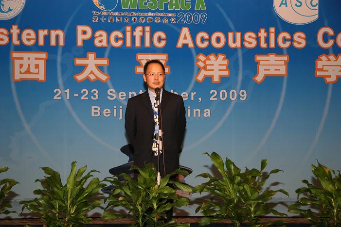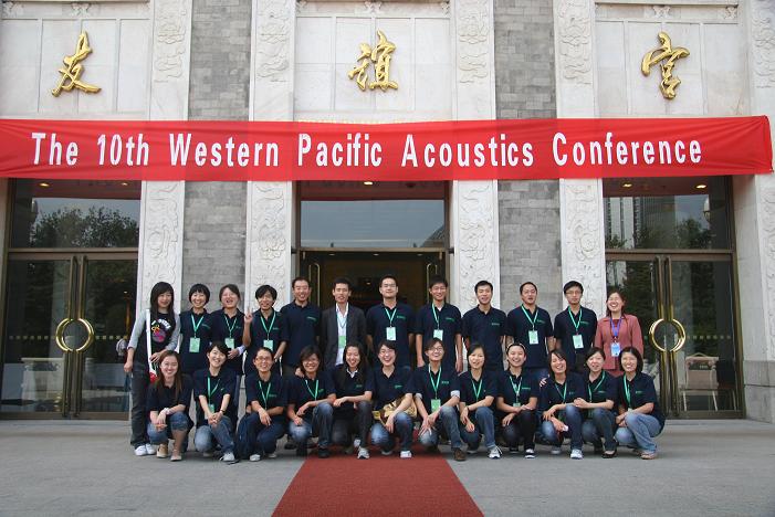 2009年09月21~23日,第十届西太平洋声学会议在北京友谊宾馆隆重召开。中国科学院声学研究所声场声信息国家重点实验室张仁和院士为本次大会主席,中国科学院高技术局田静局长为大会执行主席。田静局长,张仁和院士和Jungyul Na教授在大会开幕式致词;中国科学院声学研究所的领导和中国声学学会的领导参加了开幕式及学术会议。