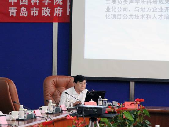 上午九时三十分,中科院副院长施尔畏主持召开了“院市合作领导小组第二次会议”,青岛市市长夏耕、副市长张惠出席会议,中科院相关所局领导、青岛市有关部门和区县领导约60人参加了会议。青岛市科技局许辉副局长介绍了院市合作的总体进展情况,包括声学所在内的中科院6个研究所的领导作了工作汇报,王小民所长在会议上汇报了声学所概况、声学所青岛研发与产业化基地建设规划、建设方案和研发方向。会议进行了充分座谈、交流。