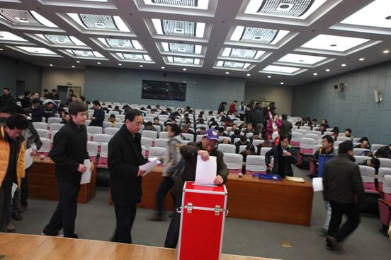 按照考核程序,声学所与会人员填写了《声学所领导班子届中考核民主测评表》。考核大会结束后,考核组成员分别与声学所科研、管理骨干谈话,听取意见和建议。