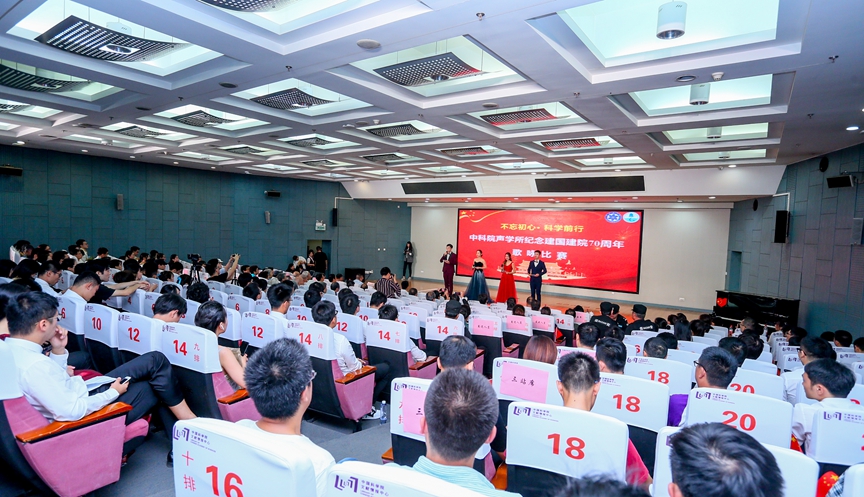 为隆重纪念新中国成立70周年、中国科学院成立70周年,2019年9月26日下午,声学所举行“不忘初心·科学前行”歌咏比赛。所长王小民,党委书记张春华,副所长李明庚、马晓川、李风华以及全所11个参赛队、450余名职工和学生以及三站代表观看并参加了此次比赛,用嘹亮、动听的歌声歌颂祖国歌颂党、歌颂科技创新成就。