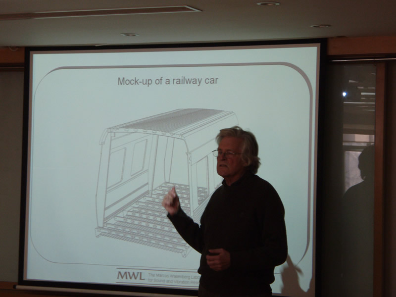 11月24日下午,噪声与振动院重点实验室安排了瑞典皇家理工学院Anders Nilsson教授结构声学系列讲座的第三次报告。由于在前两次报告中感觉受益匪浅,今天的报告厅内又多了很多新面孔,其中还包括了来自中国北车集团长春轨道客车股份有限公司的专家杨弘女士,他们希望在本次讲座中能够获取更多有用的信息和知识,来应用到我们国家的高速列车设计工作上。