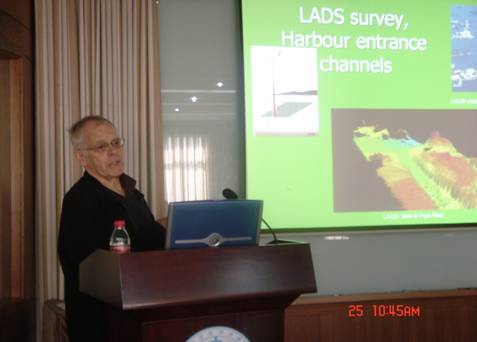 Phil Mulhearn教授曾主持由澳大利亚国防科学和技术部门组织的对于悉尼港的勘察。报告详细介绍了他在勘测悉尼港时,多波束回声测深仪、侧扫声纳、海底声学特性分类声纳和机载激光测深仪等声学仪器在勘测中的应用及其各个设备的优点和适用性,并对利用各个设备取得的数据进行了分析比对。会后,大家就相关问题进行了热烈的讨论。