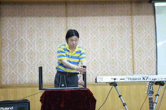 现场的乐器吸引足大家的眼光。卞老师是二胡的顶尖高手,当然不能错过它,但是他展示给我们的却是插上科技翅膀的新式二胡。传统二胡加上卞老师设计的混响器,演奏巴赫也是轻松驾驭。现场效果震撼空前,二胡不再是二胡,而是音乐精灵。在卞老师高超的技艺下全然忘记这是二胡的独奏,而是音乐的海洋。他展示了和挪威古典轻音乐组合“神秘园”一起演奏名曲《莲花》的实况,把现场气氛推到极致。二胡代表中国文化站在世界的舞台上,旋律响彻全场,展示给世人的是强有力的文化声音。