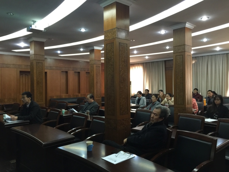 2015127日下午,东海站报告厅研三硕士生中期考核报告会正在认真进行中。各研究室的全体导师参加,同时担任评委的都是研究员岗位对应专业领域的各位老师。