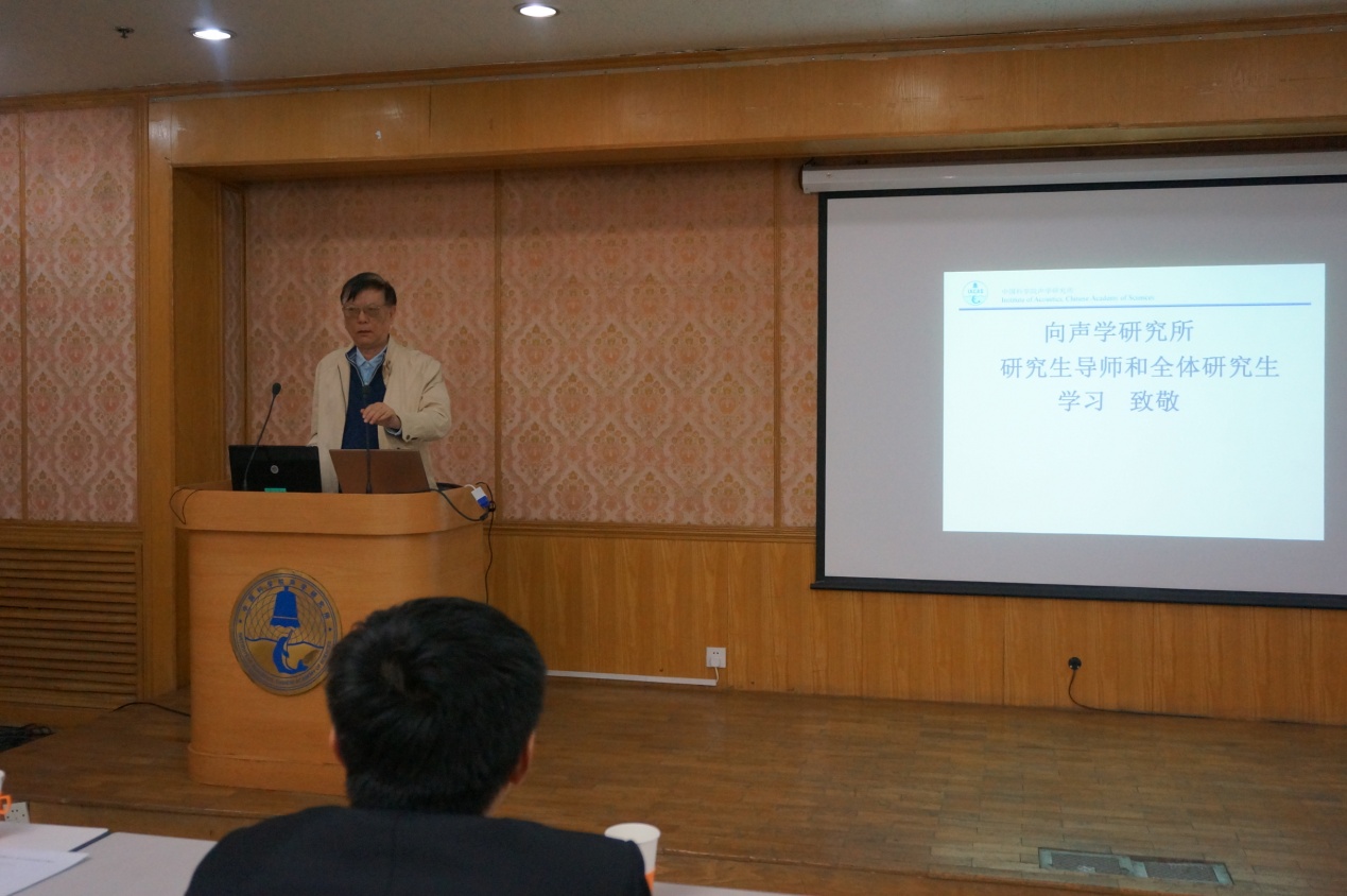 2016年4月8号,声学所第六届学术交流月开幕仪式在DSP楼多功能厅顺利举行。本次活动旨在促进学术上的相互交流,营造良好的学术氛围。张春华书记、李启虎院士、科技委员会郭良浩主任、王文研究员、导师代表及硕士二年级、博士二年级近130余名师生出席了开幕式。开幕式由研究生部李辉同志主持,党委书记张春华致开幕辞,李启虎院士和王文研究员做了特邀报告。