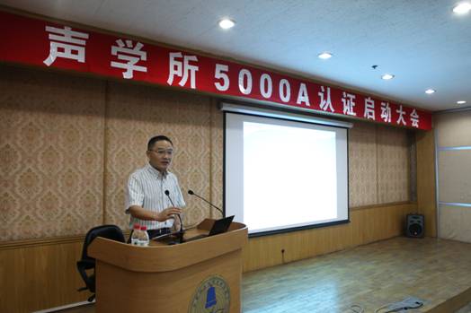 2012年6月21日下午,声学所召开了5000A认证启动大会。会议由倪宏副所长主持,王小民所长及张春华书记、相关实验室及职能部门领导、EPG成员、项目负责人、项目软件负责人、软件人员、项目管理人员、质量人员共60余人参加了此次大会。