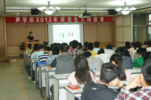 2013年9月6日上午,声学所2013级新生开学典礼暨入所教育在DSP大楼四楼多功能厅举行。人事教育处张云鹏老师主持了典礼,2013级硕士、博士新生等一百多人参加了典礼。