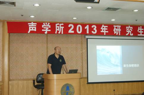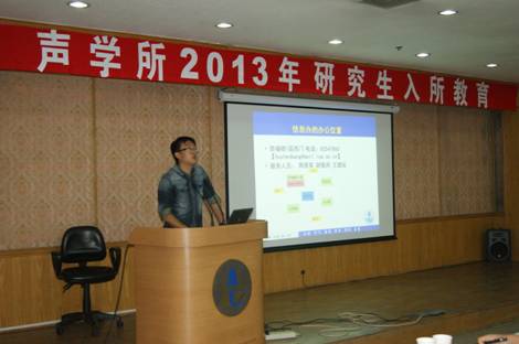 首先,人事教育处刘卫华处长对新同学的到来表示热烈欢迎并作报告。刘处长介绍了声学所的概况,让新生对声学所组织机构、科研条件、文化氛围等有了更全面的认识;并对奖助学金设置和研究生教育的各项制度进行了详细讲解;最后在如何与导师沟通以及如何规划今后的学习生活等方面为同学们提出了许多很好的建议。