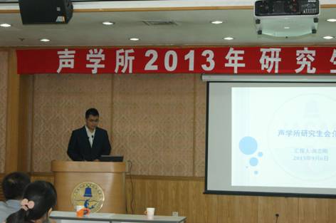 最后,声学所第十届研究生会主席商志刚为大家介绍了研究生会的相关情况。商志刚首先介绍了研究生会的各个部门和职能;进而列举了各个部门举办的丰富多彩的活动;最后希望新同学加入研究生会,丰富课余生活,服务同学。