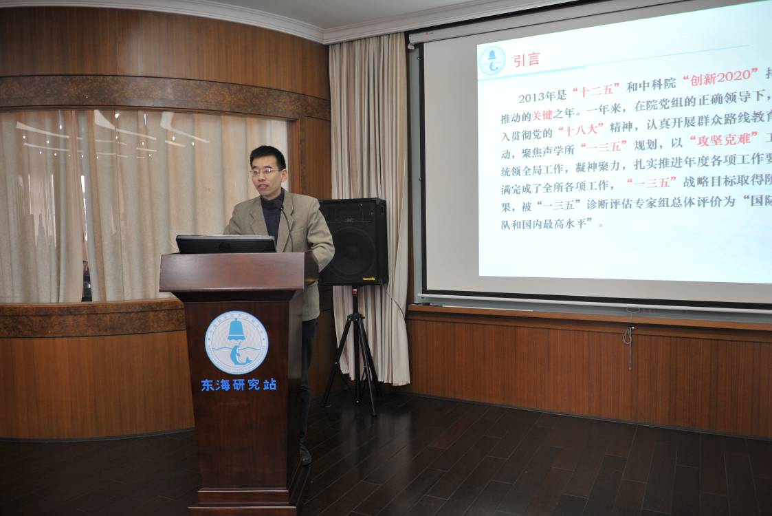 又是一年芳草绿,春风十里杏花香,马年的春天来到了。2014年3月6日下午阳光明媚,在东海研究站五楼报告厅召开了全站在职职工大会。会议由站长、党委书记胡长青主持。