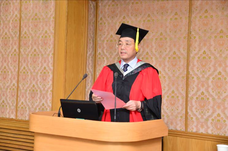 王小民所长代表声学所向毕业生们表示祝贺。王所长结合乌镇围棋峰会中,阿尔法狗对决围棋大师并胜出的事例,指出“人类的智慧必须有效协作才能战无不胜”,并鼓励同学们面对未来,要依靠团队的力量,在这个瞬息万变的时代抓住机遇,迎接挑战,努力奋斗。“虽然山高路远,声学所永远是你们的家;希望大家不忘初心,愿声学所人的精神与你们同在。”