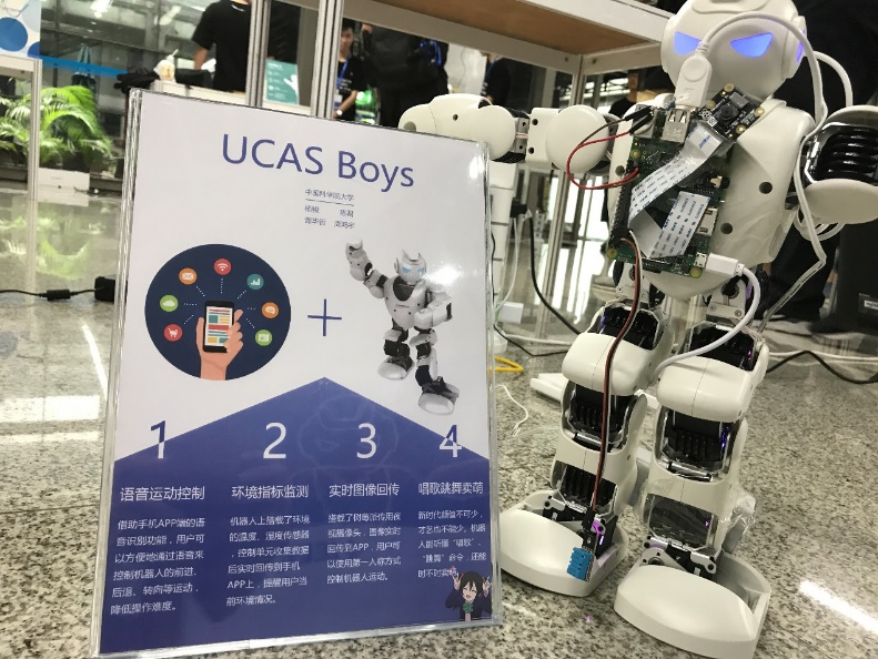 本次参赛的杨骏,陈君,谭华哲和周鸿宇四名同学利用自己的课余时间,使用树莓派和诸多传感元件将优必选公司的Alpha1机器人进行了一系列软硬件改造与扩展,实现了机器人远程控制、语音识别交互、安防视频回传、唱歌跳舞卖萌等一系列实用且有趣的功能,在诸多优秀的队伍中脱颖而出,位居决赛前三,夺得了大赛的金奖和一万元奖金。